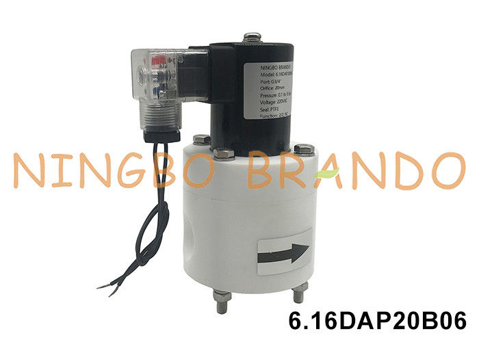 3/4 de pulgadaPTFEAnticorrosiónVálvula de solenoide resistente a los ácidos y alcalinos 24V 110V 220V